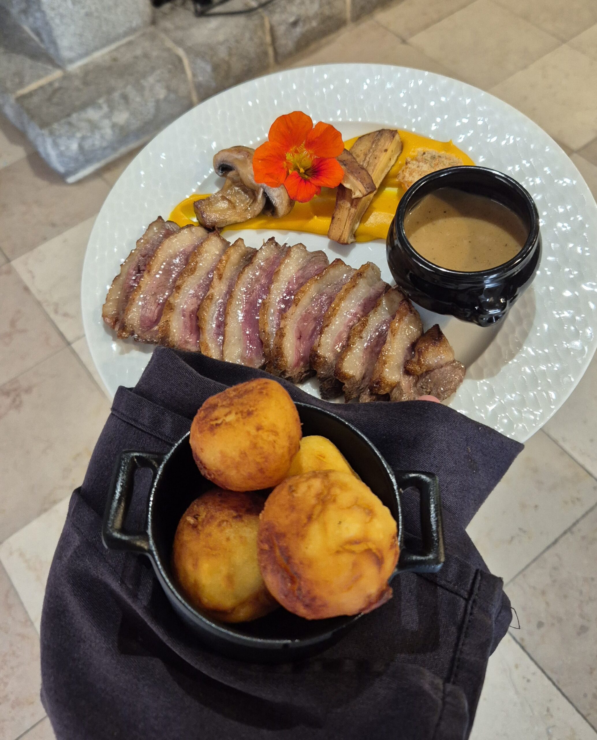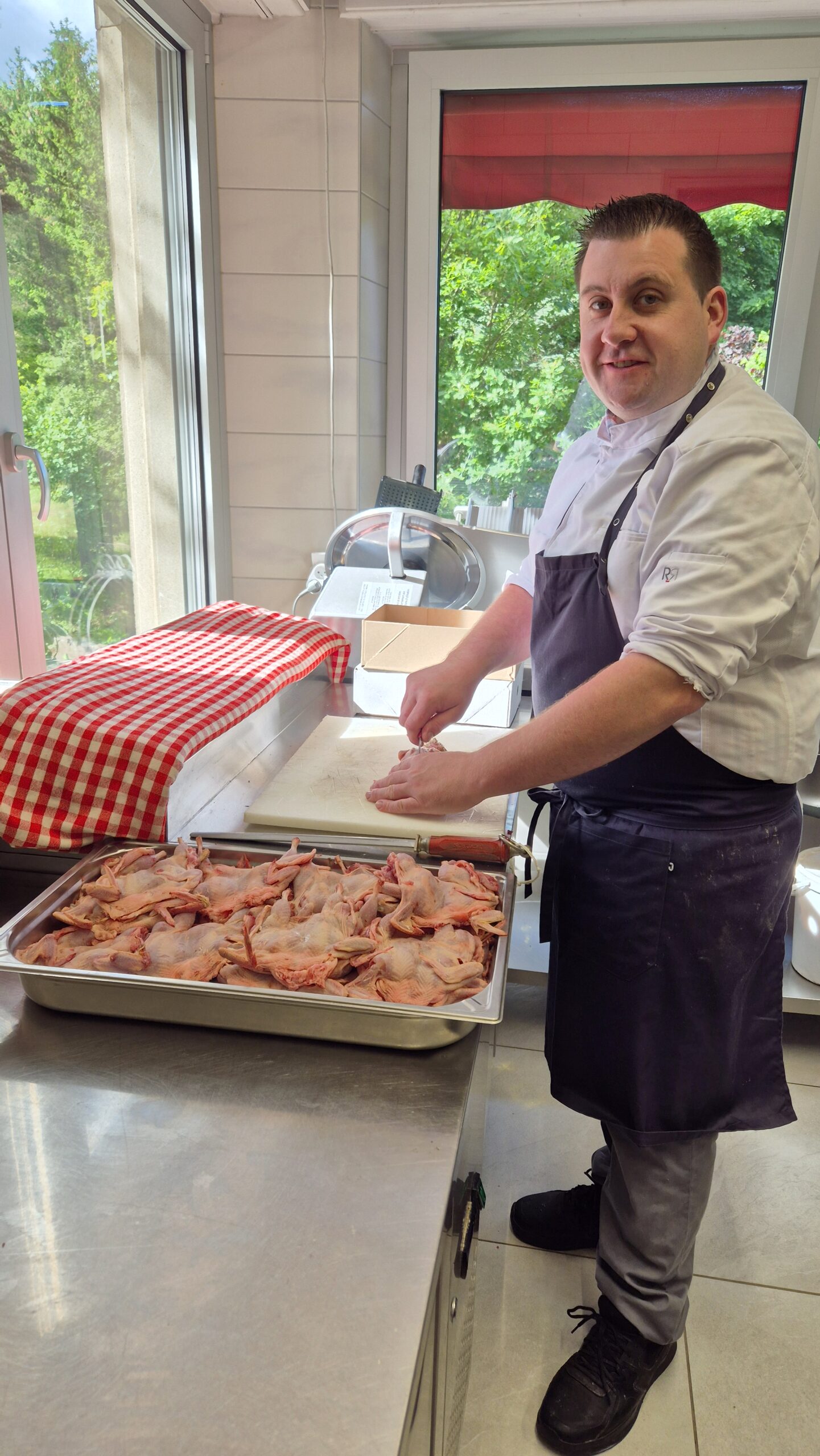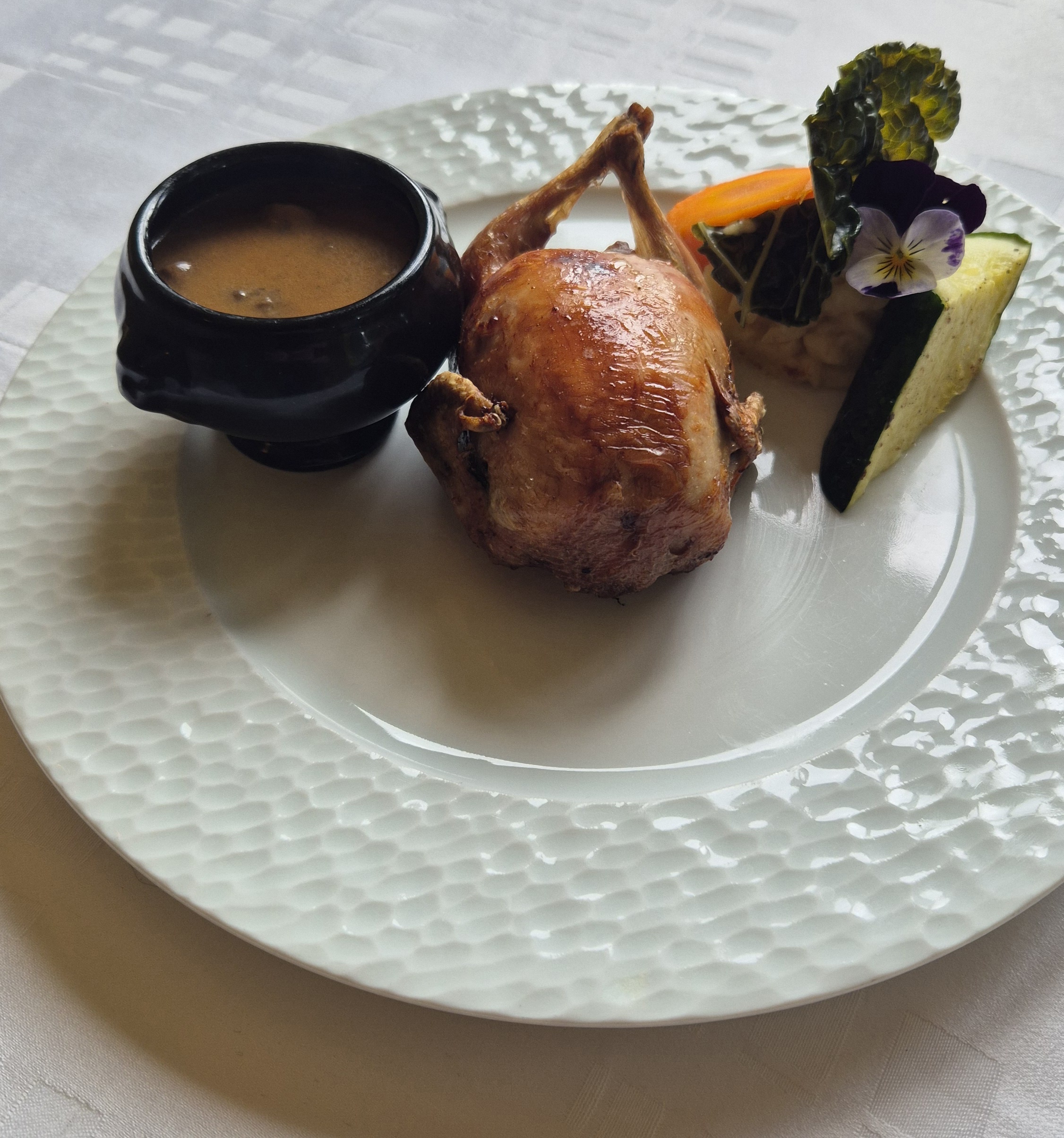La spécialité du Chef : Caille rôtie désossée, farce de volaille aux Morilles